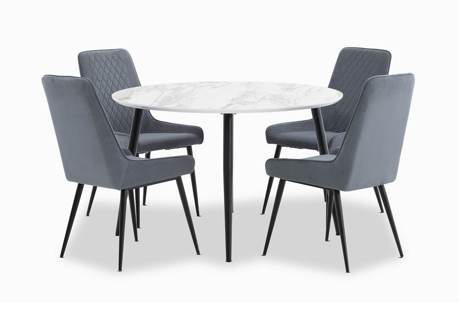 Home / Perth / Furniture / Dining Room Hire / Refurbished Amarah 5 Piece Dining Suite / Refurbished Amarah 5 Piece Dining Suite Back Refurbished Amarah 5 Piece Dining Suite AMARAH 1200 ROUND TABLE GREY CHAIRS.jpg PRICE TERM $9.00 per week on a 36 mth minItem SKU: 9978-1770963773 $222.00 per month short term plus deliveryItem SKU: 6958-1702615046 I want this OR Call US 08 9379 7375 Subject To Availability A sleek, marble-look dining table that is perfect for smaller spaces. With four grey fabric chairs, you can dine in comfort without sacrificing style!